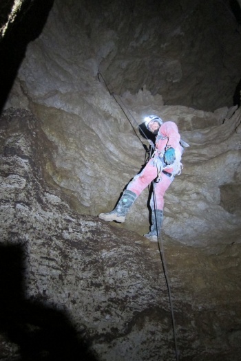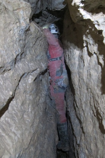 Donnerstag 04.01.2018 Wir erforschen ab ca. 12:30 noch den Canyon unter der Biwakwasserstellle. Axel und Florian bauen vorraus eine Abstiegstelle ein. Dann erreicht Axel noch eine Raumerweiterung, die vermutlich mit einem darunter liegenden bekannten Gang zusammen hängt. Gottfried kommt da nicht durch, daher wurde nicht ganz bis zum Ende vermessen. Dann gehen wir zum Biwak in der Säulenhalle zurück, eintreffend ca. 18:30