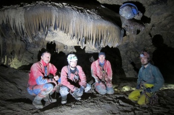 Freitag 05.01.2018 In der Nacht ist der Wasserfall aus der Decke extrem laut geworden . Der Zulauf zum See ist von ca. 1 l/s auf ca. 30 l/s angewachsen. Auch bei der Aufstiegstelle rann das Wasser herunter. Dennoch sind wir halbwegs trocken aufgestiegen. Am weiteren Rückweg gab es keine besonderen Vorkommnisse mehr. Ausstieg um ca. 15:00 bei Sommerwetterführung und Abstieg bei Tauwetter.